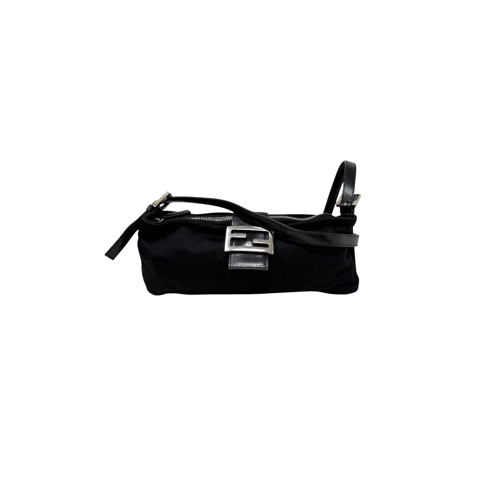 Elaborada en textil color negro. Herrajes plateados. Strap largo para usar crossbody o al hombro. Medidas: 29x11x3. Sin accesorios. Buen estado.