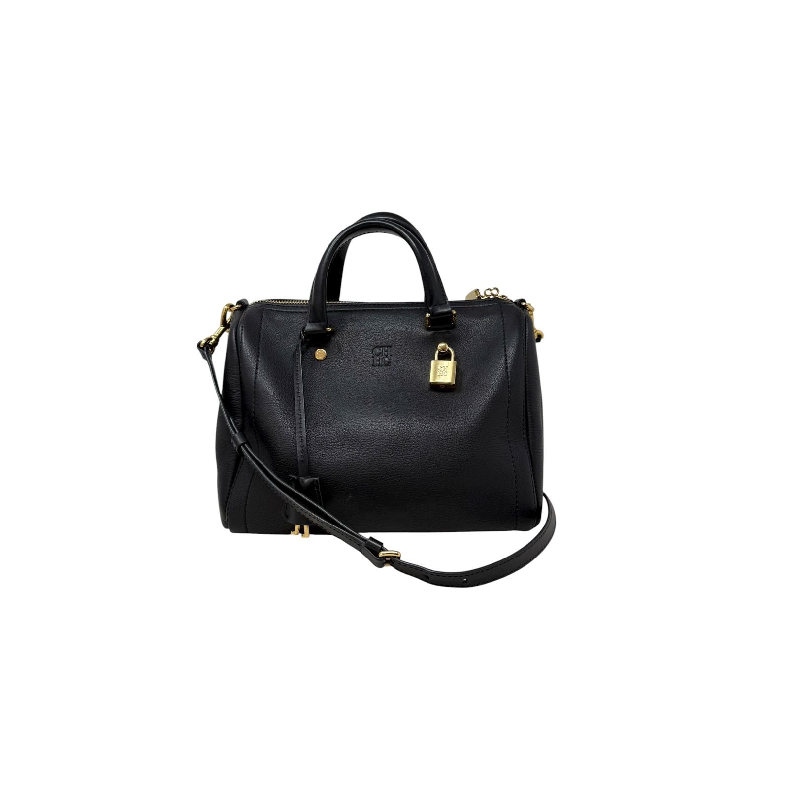 Elaborada en piel negra. Herrajes dorados. Dos asas cortas para llevar en la mano. Strap largo para usar crossbody o al hombro. Medidas: 25x18x16. Accesorios: cubrepolvo. Muy buen estado.