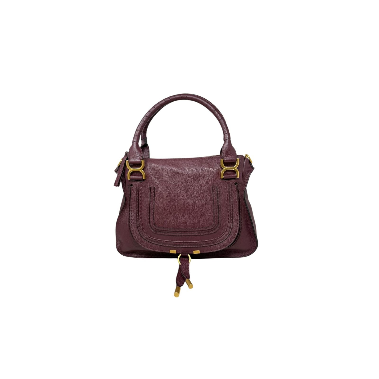 Elaborada en piel vino. Herrajes dorados. Dos asas para llevar al hombro. Strap para usar crossbody o al hombro. Medidas: 35x25x12. Accesorios: cubrepolvo. En excelente estado.