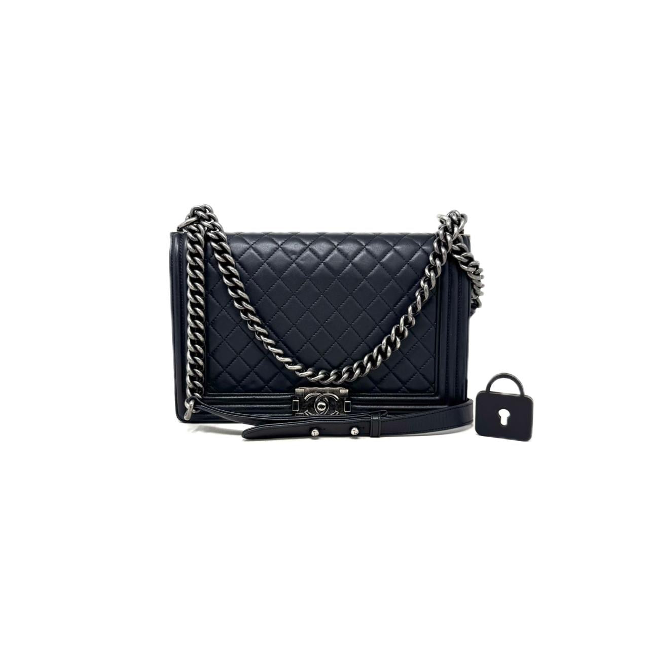Elaborada en piel lambskin color negro. Herrajes plateado antiguo. Cadena larga para llevar crossbody o al hombro.