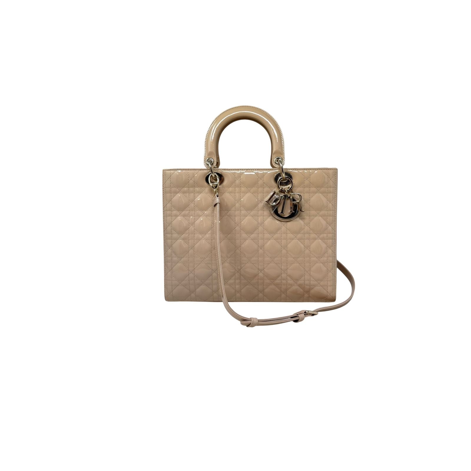 Elaborada en charol color nude. Herrajes dorados. Dos asas cortas para llevar en la mano. Strap largo para usar crossbody o al hombro. Medidas: 32x25x12. Accesorios: caja y cubrepolvo. Nueva, estrénala.