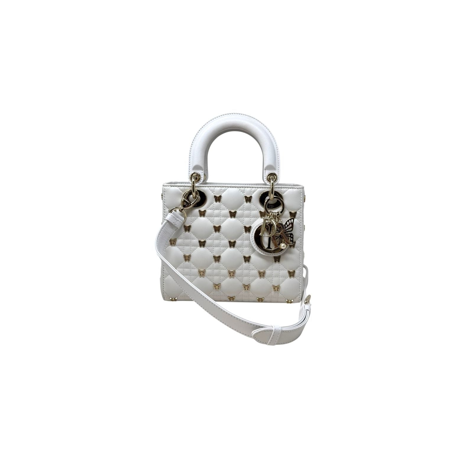 Edición especial. Elaborada en piel blanca. Herrajes dorados. Con Charms de mariposas. Dos asas cortas para llevar en la mano. Strap largo para usar crossbody o al hombro. Medidas: 20x17x8. Accesorios: cubrepolvo. Excelente estado.