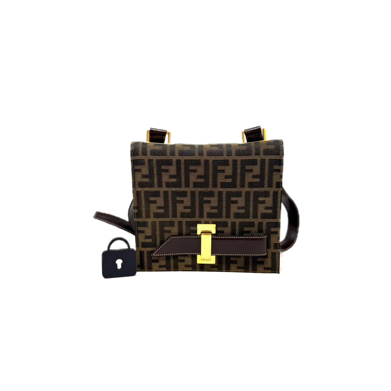 Elaborada en el tradicional zucca de la marca. Herraje dorado al frente. Strap en piel para llevar al hombro. Marcas de uso. Buenas condiciones. Sin accesorios. Payfast con transferencia:...